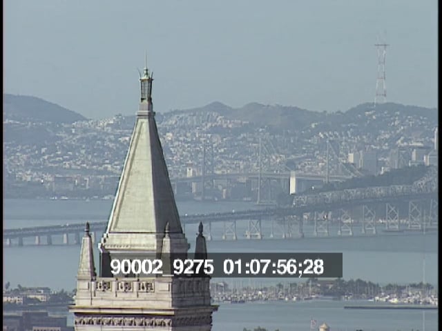 Still footage of various San Francisco landmarks: Mission district, downtown, and the Bay Bridge.