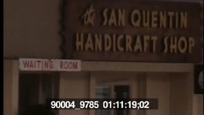 An African American woman and her two children stand in front of the San Quentin Handicraft Shop.…