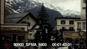 LS of snow covered Swiss mountain ranges. CU on Maloja sign, various mountain landscape long…