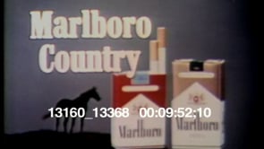 Commercial for Marlboro cigarettes. A horse gallops by in the desert and joins a group of horses. A…