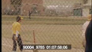 WS of an inmate at San Quentin State prison practicing baseball his yellow uniform. WS of a group…