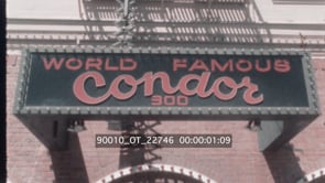 Exterior shot of North Beach's The Condor, a club. Men in suits watch Carol Doda perform on stage.…