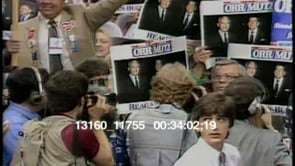 1984 Republican Convention in Dallas.Reagan and Bush with their wives on a large screen at the…