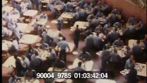 WS from above of prisoners eating food at the mess hall at San Quentin State Prison. Prisoners…
