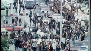 Vietnam War Protests in downtown San Francisco, 5/4/1970. Long shot of crowd/protestors moving…