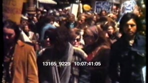 MS of people marching down the street for peace. Shot of truck filled with people dancing and…