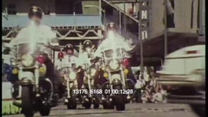 Urban scenes, Chicago (silent). Parade in progress, marching band viewed from street level; street…