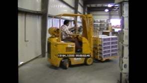 This video is about chemicals (EDB) in fruits. A MS of a worker wearing space-like suit with oxygen mask before he fumigates. A MS of him preparing to fumigate. A MS of an interviewer and a speaker showing her a jar of oranges. A CU of jars of oranges that have been treated with EDB. An ECU of the oranges. A CU of the speaker talking about air ventilation in the jars. A CU of green fruits. A MS of fruits in a market. A CU of the interviewer staring at the jars. A MS of the interviewer taking notes and the speaker.