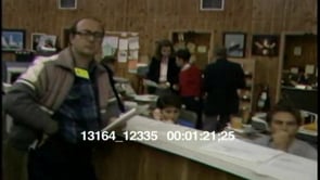 Two of eight clips on the state of Cape Canaveral after the Challenger Space Shuttle crash. The woman from the last clip is still on the phone talking to the same person, discussing the length of a sentence. Zoom out to her examining the sentence. Cut to a CU of a uniformed man talking to a crowd about the crash, Zoom out to see a group of people taking notes on his words. Cut to a man asking the uniformed man a question. Zoom in on a man writing things. Cut to a sergeant in MCU talking about debris from the crash.