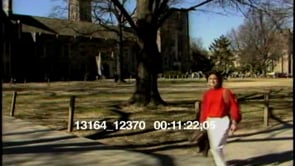This clip contains footage of Duke University. Begins with a CU of a girl with red T-shirt talking. The girl is interviewed by someone. Cuts to a boy with gray T-shirt and hat. He is also interviewed by someone. Cuts to a man with glasses at the end of this footage.