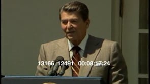 One long WS of President Reagan accepting a gift from an elder of of Navajo Indian tribe. Reagan gives a speech showing appreciation for the gift.
