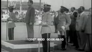 Funeral for Soviet cosmonaut Vladimir Komorav. Celebrations for 50th anniversary of Bolshevik revolution in Moscow. Daughter of Stalin, Svetlana, flees to the West, speaks to the press. Chinese celebrate Chairman Mao. Riots in Hong Kong. Chinese embassy workers fight British police in the streets.