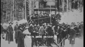 Film about the creation of the first Transcontinental railroad. Men assemble tracks: screw them together, carry parts on wagons, shovel ground. American Indians on horseback chase and shoot at men as they make their way down the railroad on a cart. Indians set the train tracks on fire. Indians rope and pull down what looks like a telegraph post.
