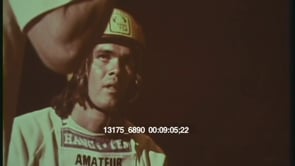 Educational film about safety while skateboarding. Several views of competitive freestyle and slalom skateboarding; jumping tricks, trick riding; skateboarding with sails; slalom racing; CU skateboard passing, sunset in background.