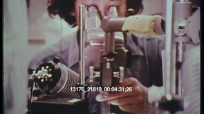 Takes a look at the possibilities and implications of human genetic engineering. Scentists using lab equipment, frequently shaking bottles and test tubes. Geneticist David Suzuki (with a beard and long hair) working, surrounded by teenaged Asian girls with pigtails. CU of a hand with a pointer, poking at genetic material of some kind. Teenaged Asian girl looking through a microscope. Closeup of hand turning knob. Suzuki putting a slide under a micrscope. Suzuki talking and laughing with the teenaged Asian girls.