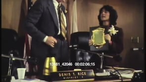 Barbara Boxer addresses the audience. Boxer handing off plaques to Board of Supervisor members. Shots of audience members. Group of girls playing guitars and singing a song in the Board room. Audience applauding performance. BOS hears comments from audience. CU on Boxer's nameplate.