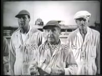 Stills from a police fight. Stunt men in training watch footage of themselves practicing. Stunt men learn how to car skid. Production crew makes props.
