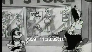 frog looks at empty pockets, old lady pushes stroller, gives frog a coin…