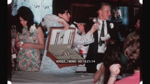 African Americans dance at a wedding party. Pan across a room where several people are watching others dance. CU of couples dancing, holding each other close.