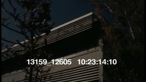 WS of the California Academy of Sciences museum in Golden Gate Park, San Francisco. Pan from the fountain out front to the facade of the museum. A MUNI bus passes.