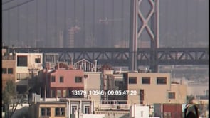 Footage of some vegetation, a woman is revealed behind a branch of leaves. WS of a man looking out at the bay, Golden Gate Bridge is in the BG. PAN to another man standing below on the beach. He walks towards the camera and than out of the shot. Waves crashing on the beach. CU of the man's face in profile with Golden Gatre Bridge visible.
