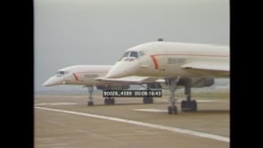 Here's a 1980s clip of Concorde jets on a runway, taxiing, and taking off. Later the same jets are seen flying in formation.