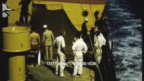 Hand held footage of a marching band playing as a ship pulls out of a…