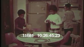 Black middle-class family at breakfast time; children are setting table…