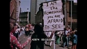 Gay protestors in the West Village in NYC. MS of sign, "I am the…