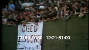 Disco Demolition Night at Comiskey Park in Chicago. Fireworks exploding…