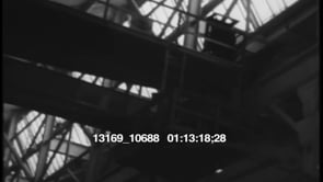 Women enter a factory to start work. Woman gets in an overhead crane in…