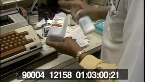 Zoom out of shelves full of pill bottle behind a pharmacy counter…