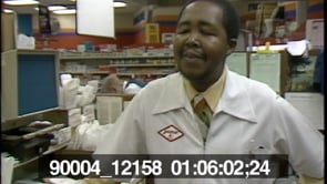 An interview with a pharmacist behind a pharmacy counter. CU of…