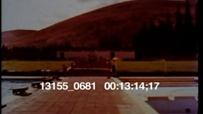 Birds flying above and on lake. Front view of Kibbutz. Toddlers playing…