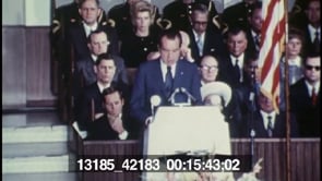 A crowd applauds. Nixon seated on stage. He makes his way to the podium…