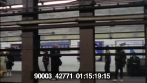 Pedestrians walking down subway entrance/stairs/steps, person up…