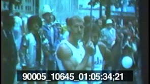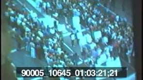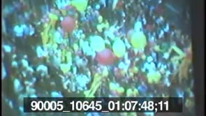 People watch a gay pride parade from windows of an apartment. People…