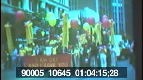 People march in a gay pride parade in San Francisco. People ride floats…