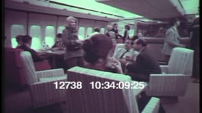 Medium shot of a man, who is the narrator, and two stewardesses,…