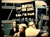Large peace demonstration, many placards. Anti-Vietnam War.