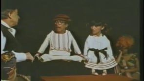The face of a man and a woman are placed at the top of two puppet…