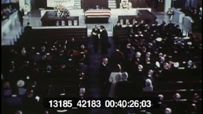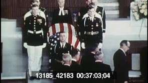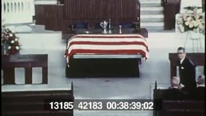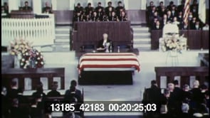 A church's stained-glass windows. The flag-draped coffin of J. Edgar…