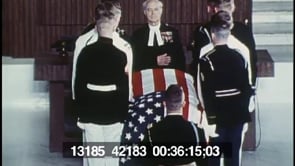 Pallbearers stand around J. Edgar Hoover's flag-draped coffin. Mourners…