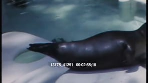 Trainer throws a toy or baton into the pool for the sea lion to fetch,…