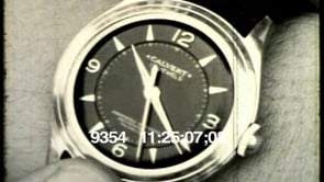 The watch on a man’s wrist is shown as his other hand points to it.…