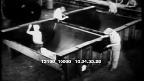 Utah: Rubber production. Raw rubber being rolled. rubber slabs being…