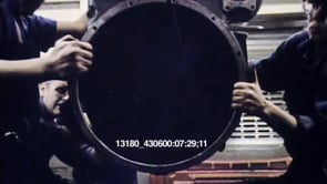 Workers put together a Pan Am jet/ plane. Montage of workers inspectign…