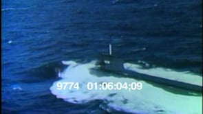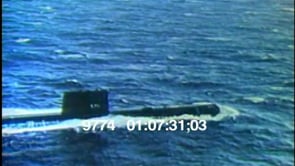 Aerial footage of a United States military submarine moving across the…
