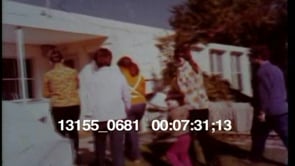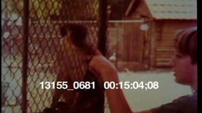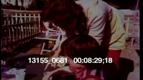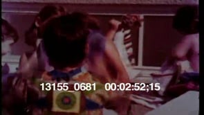 Exterior yard; four year olds running across lawn. Woman holds baby and…