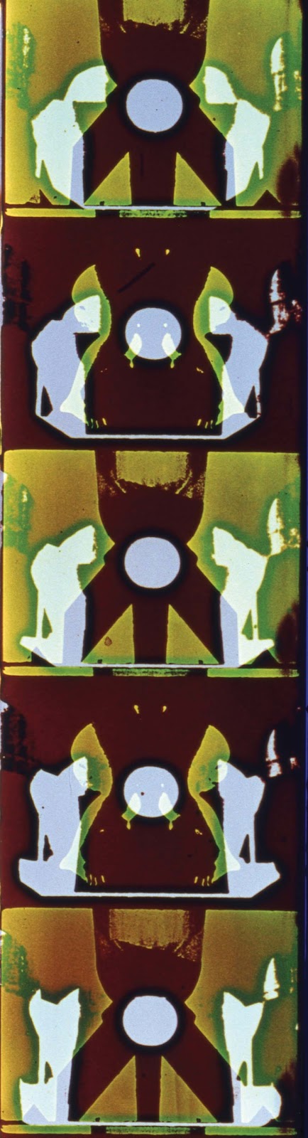 A mind-blowing visual and sound experience by famed experimental filmmaker (and sometime Star Wars special effects wiz) Pat O’Neill with sound by cult musician/early synthesizer artist Joseph Byrd (The United States of America). Described as “a bilaterally symmetrical (west to east) fusion of human, biomorphic and mechanical shapes in motion. Has to do with the spontaneous generation of electrical energy. A fairly rare (ten years ago) demonstration of the Sabattier Effect (re-exposing partially developed film to light during the processing) in motion. Title refers to the film stock of the same name.